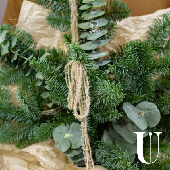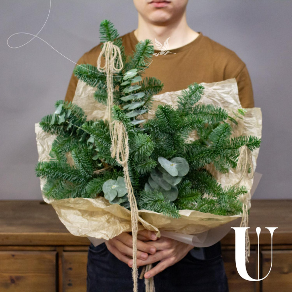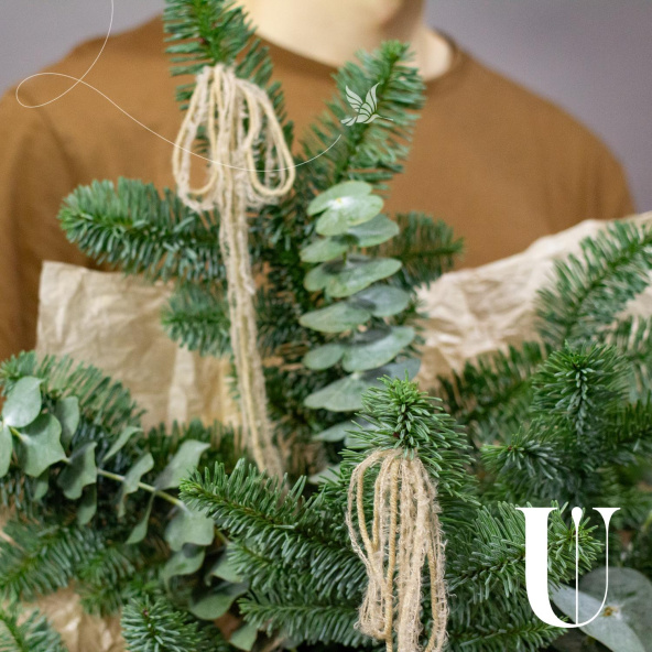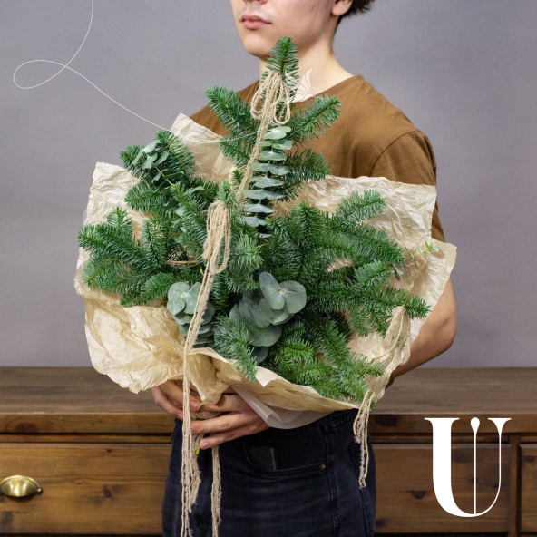 Буке из нобилиса и новогоднего декора в упаковке