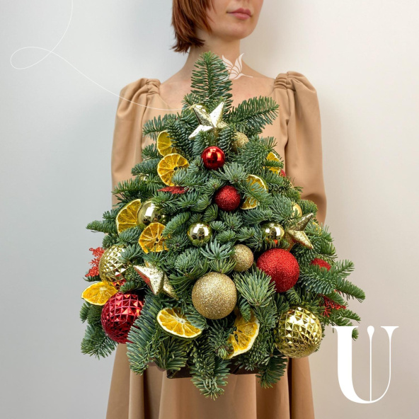 Ёлочка из натурального лапника, собрана по веточке на флористическую губку и украшена, не осыпается