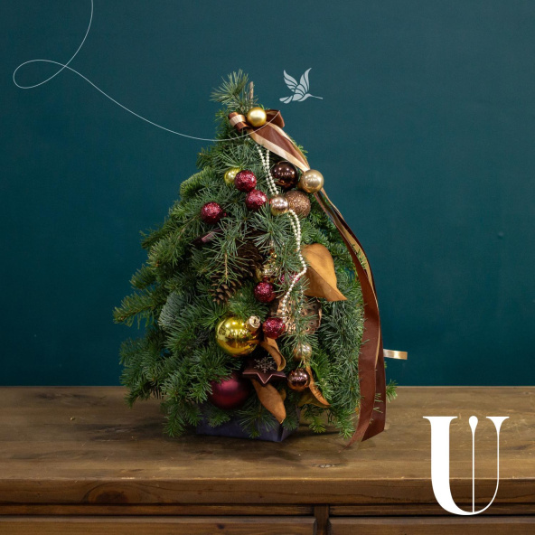 Новогодняя композиция из нобилиса и декора в шляпной коробке