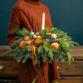 Букет из нобилиса, красных ягод и гирлянды из сушек