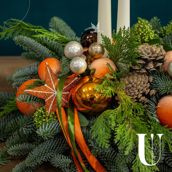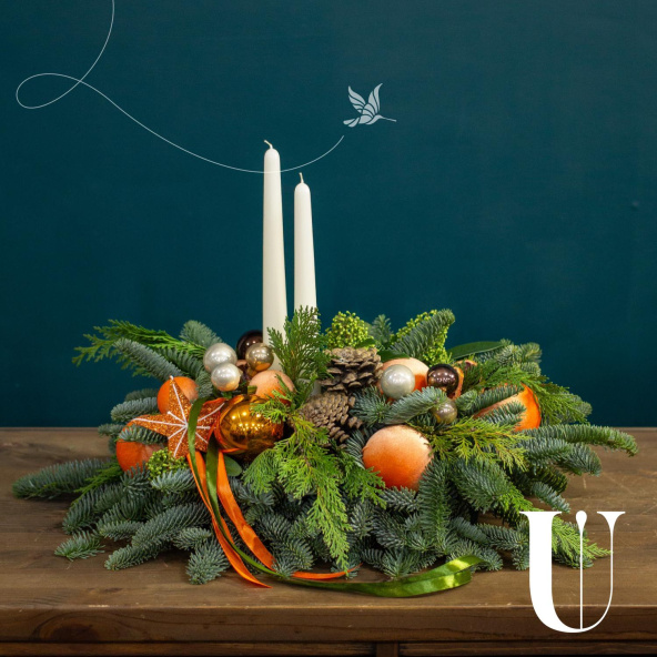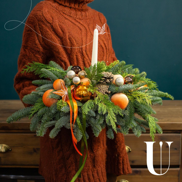 Новогодняя композиция из нобилиса, рускуса и шаров