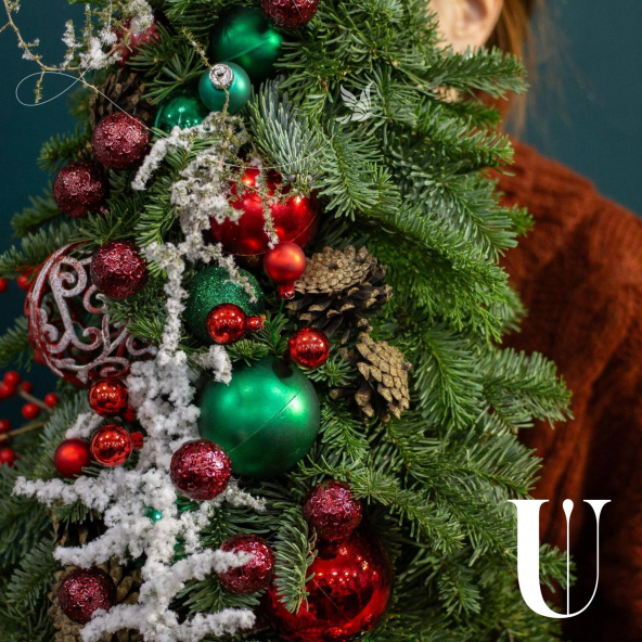 Рождественская композиция из нобилиса, рускуса и шаров