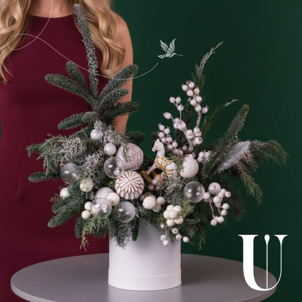 Праздничный набор из нобилиса, можжевельника, свечей и шаров