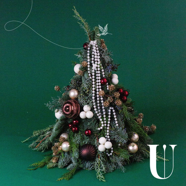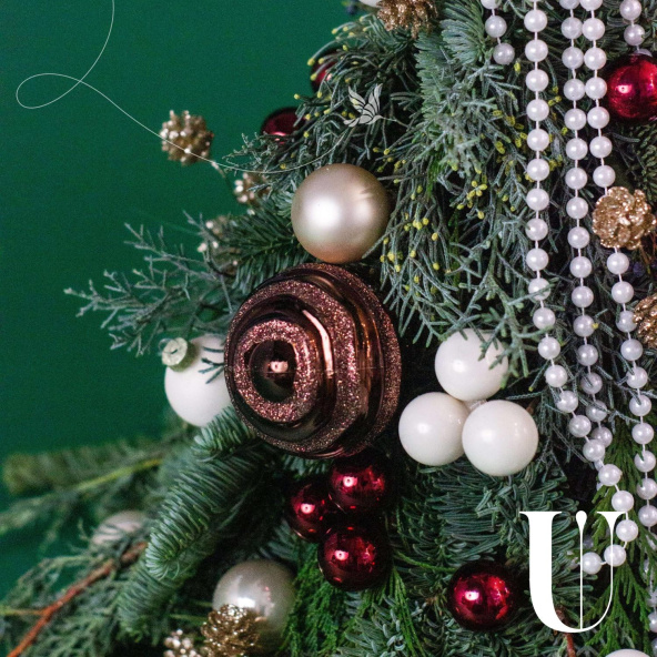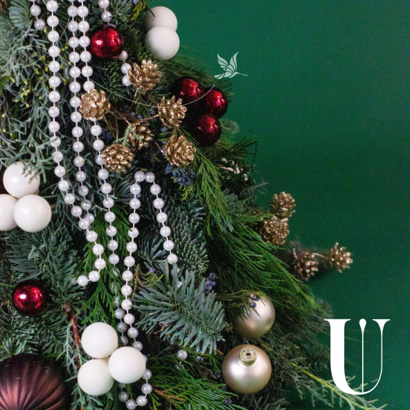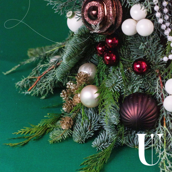 Рождественская композиция из нобилиса, рускуса и шаров