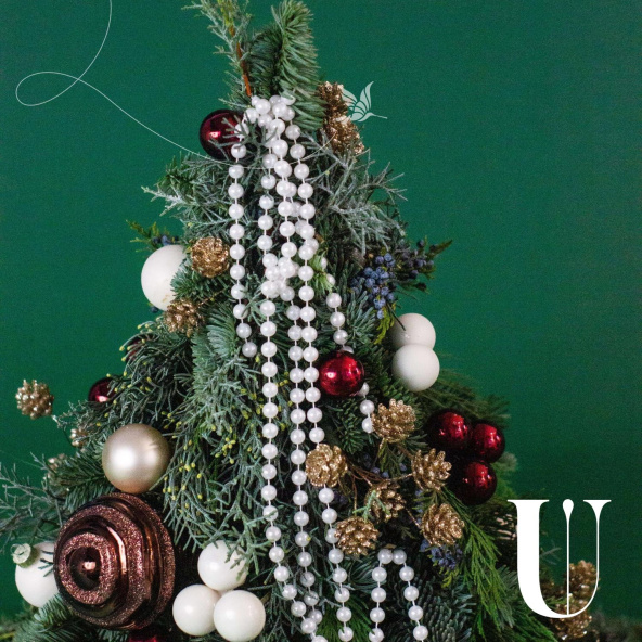 Новогодняя ёлочка из нобилиса, сосны, красных бус и красных шаров