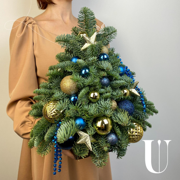 Ёлочка из натурального лапника, собрана по веточке на флористическую губку и украшена, не осыпается