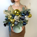 Новогодняя композиция из нобилиса и новогодних шаров