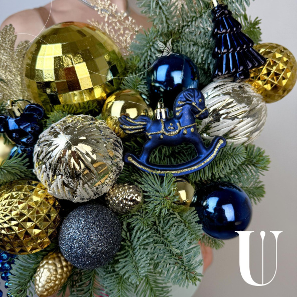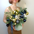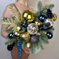 Новогодняя композиция из можевельника, нобилиса, шишек и шаров