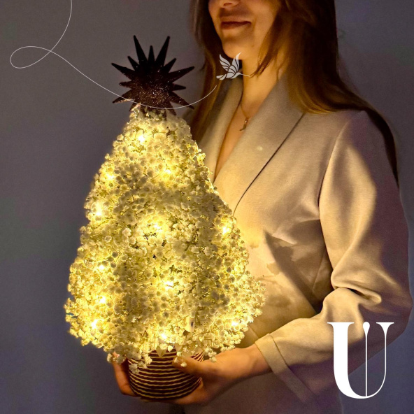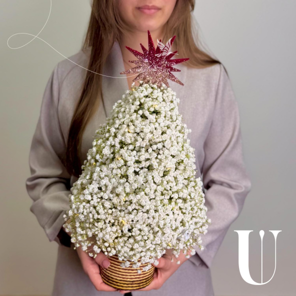 Новогодняя елочка ручной работы из белой пушистой гипсофилы. Прекрасный новогодний подарок, как для себя, так и для близких или коллег.