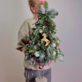 Символ нового года - елочка, а в нашей еще и символ наступающего года - лошадка. Елочка из микса еловых веточек, с праздничными огоньками, шишками и игрушками.