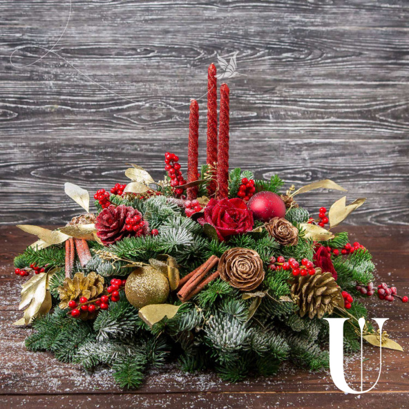 Композиция из нобилиса и новогоднего декора