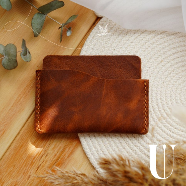 - Коричневый картхолдер из натуральной кожи ручной работы;