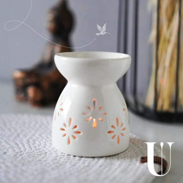 - Аромалампа с чайной свечой и эфирным маслом;