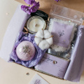 Соль для ванн с лепестками лаванды, Мыло ручной работы, бомбочка для ванн, соевая свеча в баночке, бутон хлопка, открытка.
