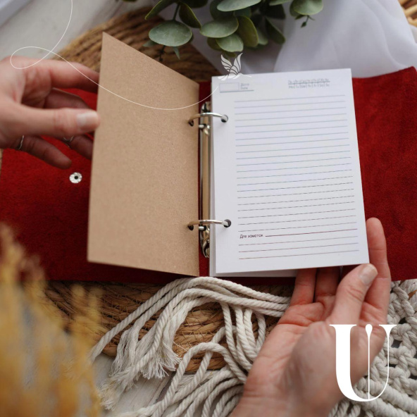 - Ежедневник из натуральной кожи ручной работы (размер бумажного блока внутри: 150х105 мм);