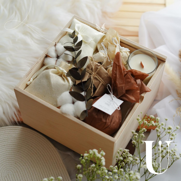 Подарочный набор "Happy Day" - идеальный вариант подарка для любимой девушки, жены, подруги, дочери, сестры, мамы, бабушки, коллеги или сотрудницы на работе. Такой душевный и оригинальный подарок ручной работы в стильной деревянной коробке, перевязанный лентой и украшенный сухоцветами точно не оставит равнодушным вашего близкого человека!