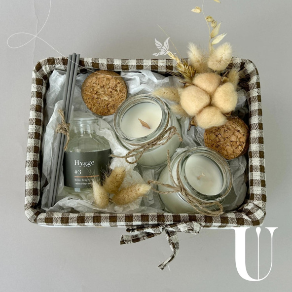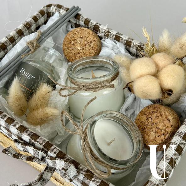 - Набор декорирован натуральными сухоцветами, которые добавляют подарку естественный природный шик.