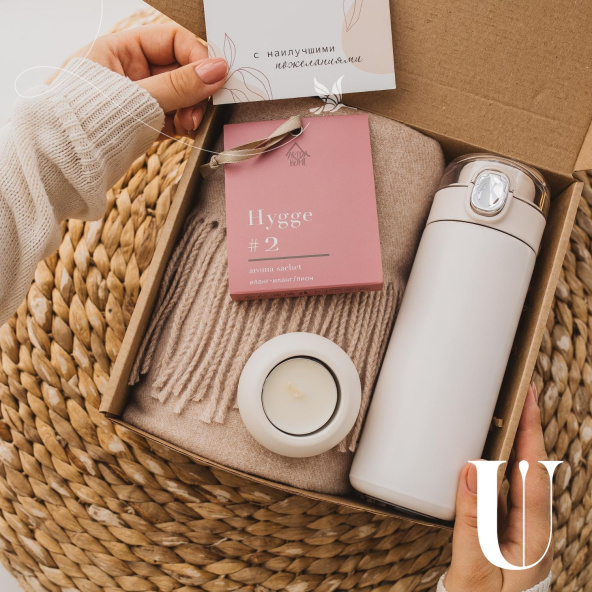 Элегантный подарок, который не оставит равнодушной ни одну девушку. Тёплый шарф-палантин и стильный термос прекрасная пара, чтобы согреть в холодную погоду. Милый подсвечник из гипса со свечой и арома саше подарят дому атмосферу тепла и уюта.