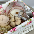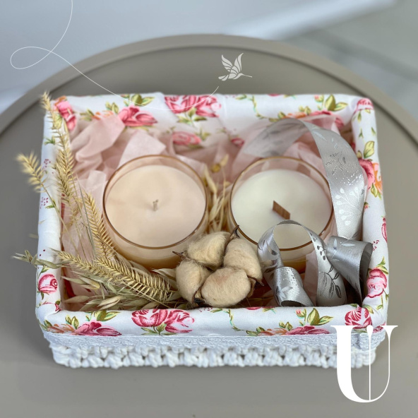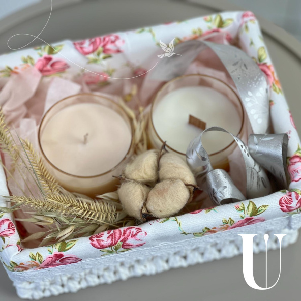 Подарочный набор «Мейлис» с ароматическими свечами и сухоцветами в интерьерной корзинке.