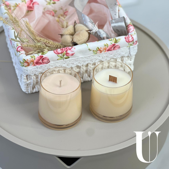 - Ароматические свечи ручной работы из натурального соевого и кокосового воска. Свечи выполнены в стеклянном подсвечнике. Объем свечей 2 по 190 мл;