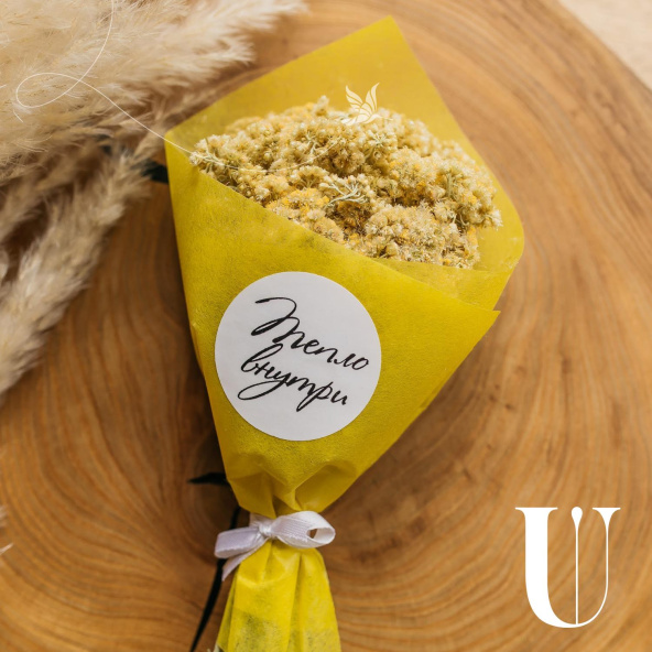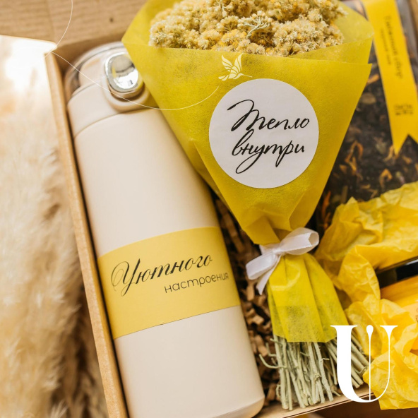 Этот набор — идеальный подарок для тех, кто ценит уют и заботу. В нем собраны только самые приятные и полезные вещи: ароматный травяной чай «Таёжный сбор», который согреет в холодные дни, нежный мёд-суфле с цитрусовым вкусом для сладкого удовольствия, стильный термос, чтобы наслаждаться любимыми напитками в любое время, и букетик яркого ароматного иммортеля. Завершает композицию открытка с теплыми пожеланиями, которая добавит вашему подарку особую душевность. Подарите радость и уют с этим набором!
