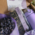 Подарочный набор из ароматической свечи, женских носочков, мыла ручной работы, открытки и веточки эвкалипта