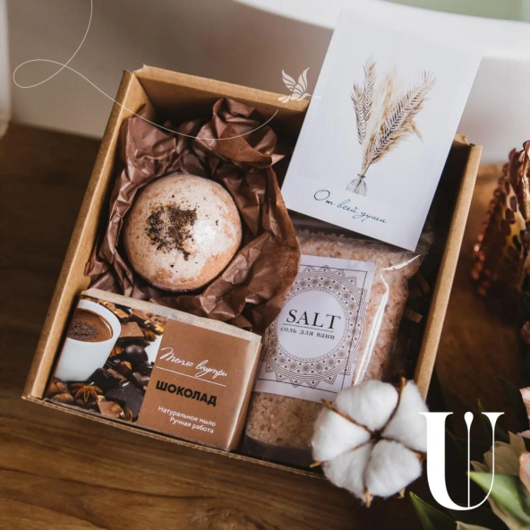 Набор оформлен в крафтовой коробочке 16*16 с атласной лентой. Подарочный пакет в комплекте!