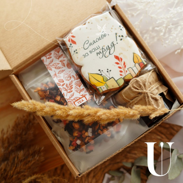 Подарочный набор Best Box "Спасибо, за ваш труд!" - идеальный вариант подарка для учителя, преподавателя, воспитателя или педагога. Такой душевный и оригинальный подарок ручной работы в стильной крафтовой коробке, перевязанный лентой и украшенный сухоцветами точно не оставит равнодушным вашего получателя!