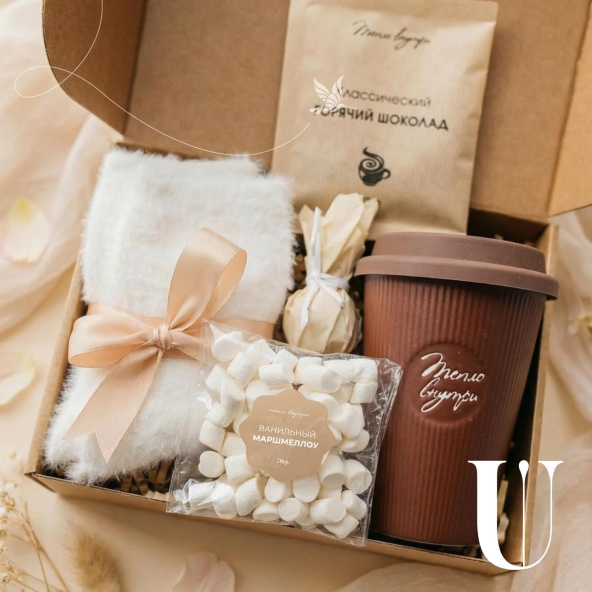 Подарочный из терморкружки, карамели, кофе и кокосовой конфеты