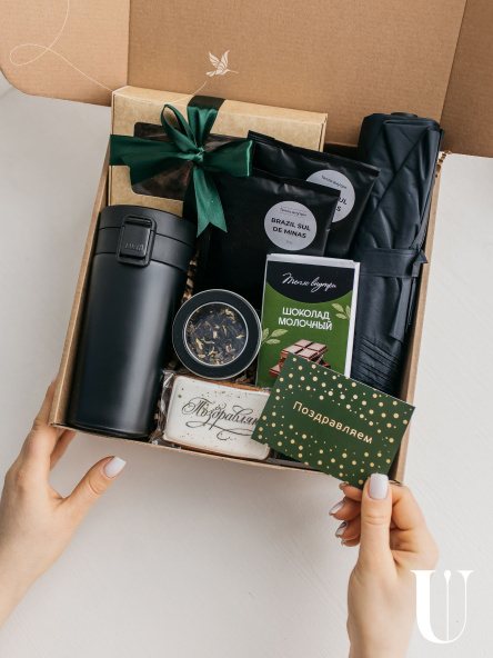 Подарочный набор с зонтом, термосом, чаем и баночки меда