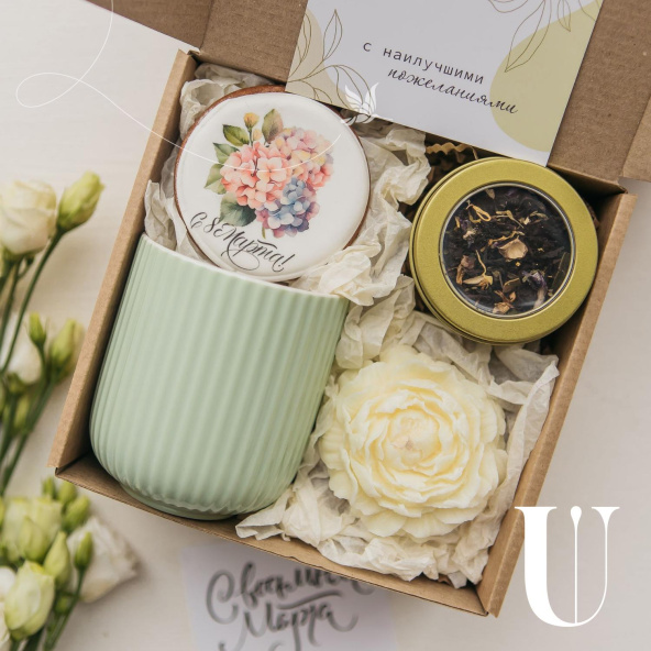 Набор оформлен в крафтовой коробочке 16*16 с атласной лентой.