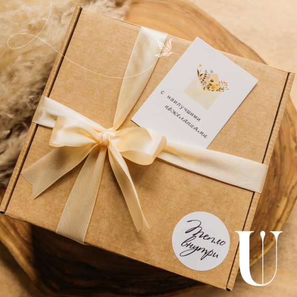 Набор оформлен в крафтовой коробочке 20*20 с атласной лентой.