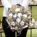 Букет сухоцветов из белого хлопка и эвкалипта в упаковке