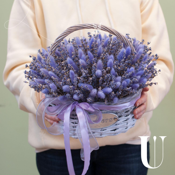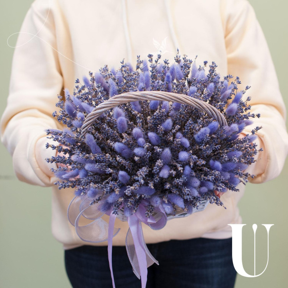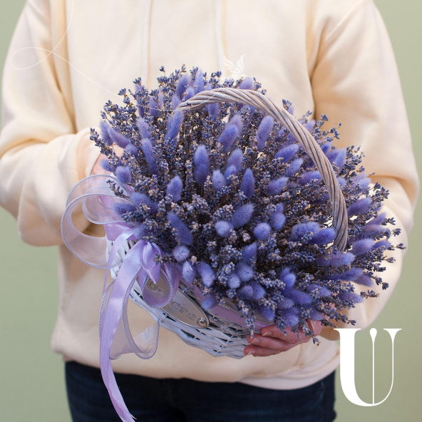Букет из хлопка, лагуруса и других сухоцветов в упаковке