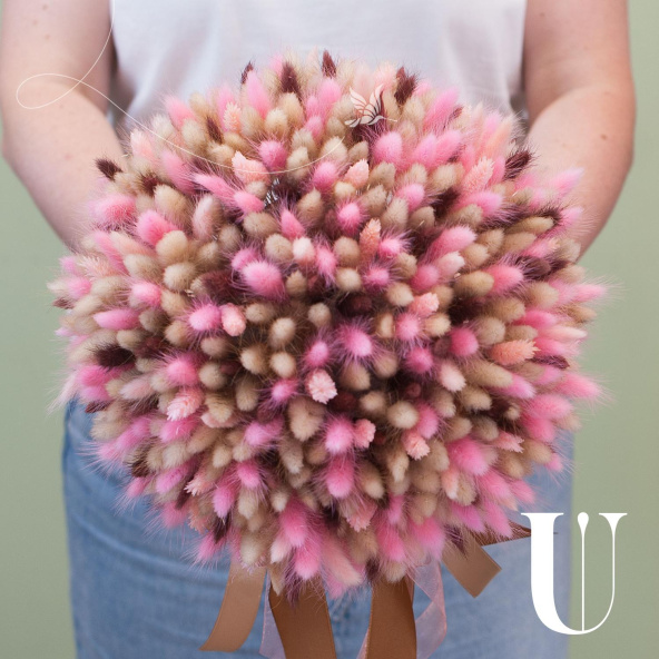 Букет из хлопка, лагуруса и других сухоцветов в упаковке