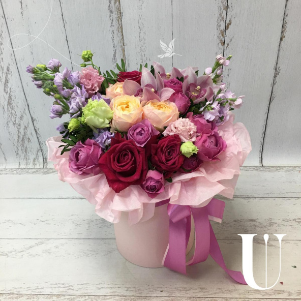 - Шляпная коробка маджестик, розовая (выс. 25 см, диам. 20 см) - 1 шт