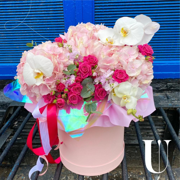 - Шляпная коробка бурано, розовая (выс. 20 см, диам. 25 см) - 1 шт