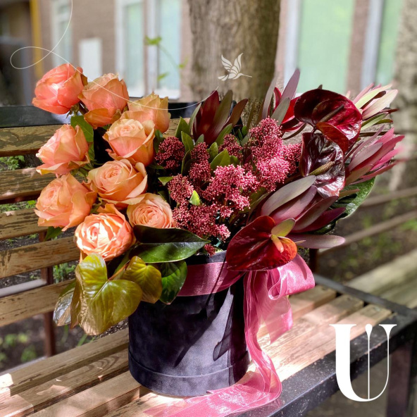 - Шляпная коробка бархатная, чёрная (выс. 20 см, диам. 18 см) - 1 шт