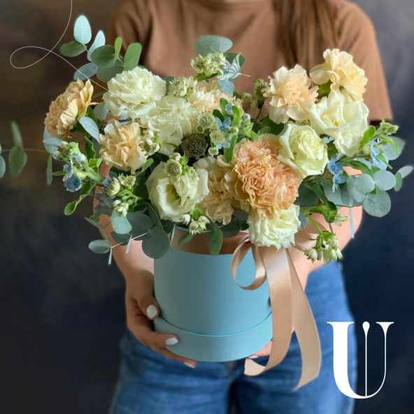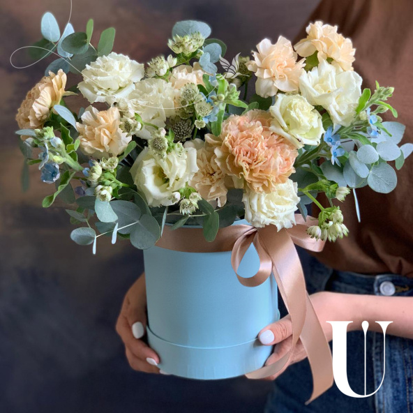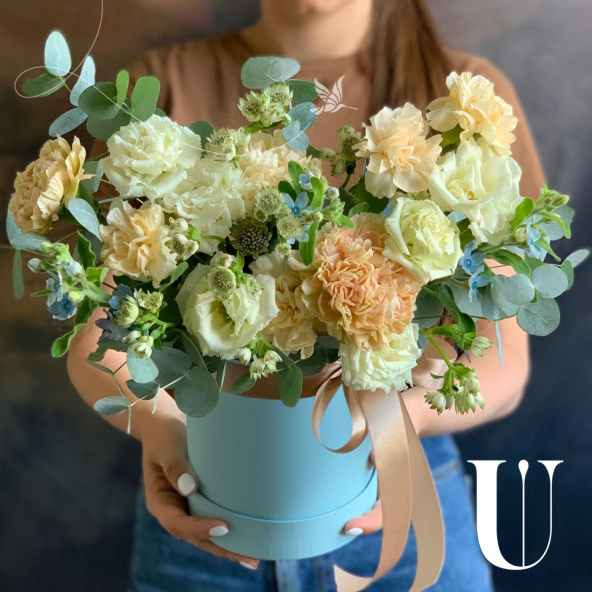 - Шляпная коробка, голубая (выс. 17 см, диам. 14 см) - 1 шт