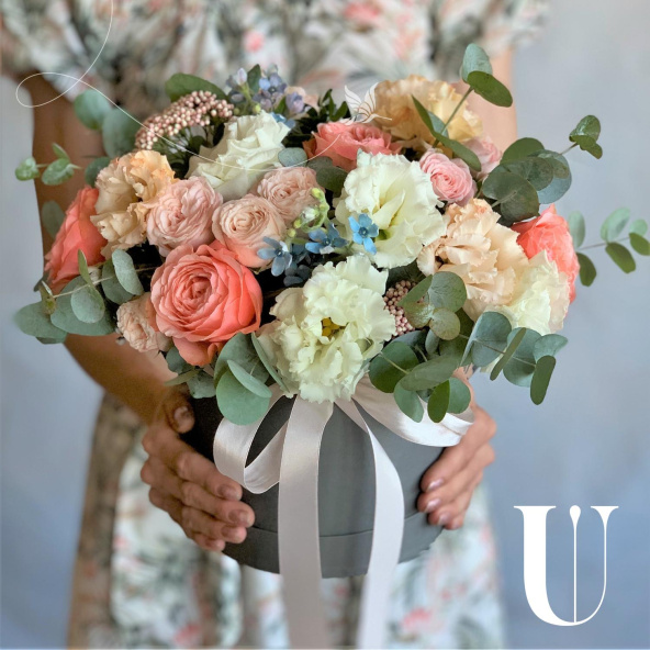- Шляпная коробка бархатная,серая (выс. 16 см, диам. 16 см) - 1 шт