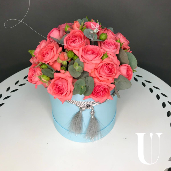 - Шляпная коробка маджестик (U), светло-голубая (выс. 15 см, диам. 15 см) - 1 шт