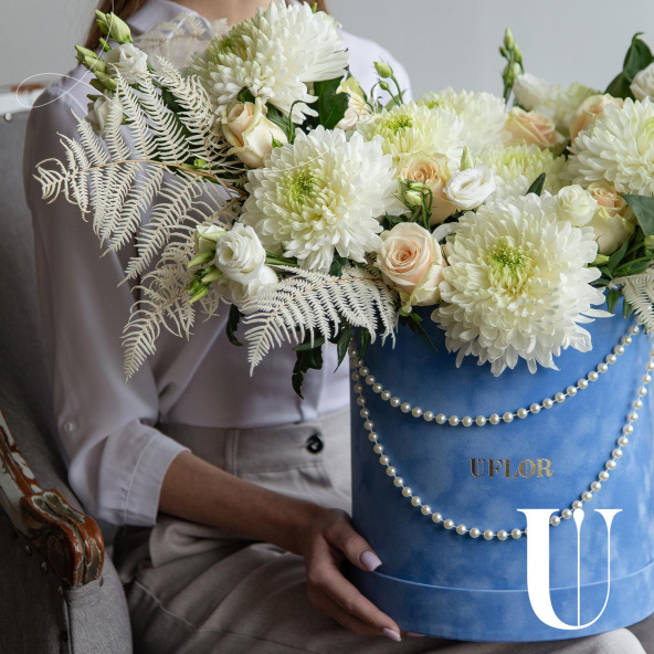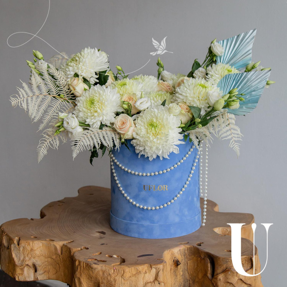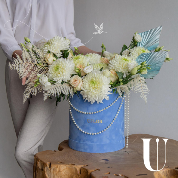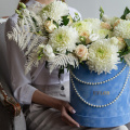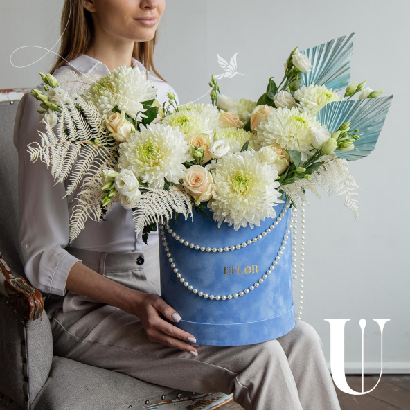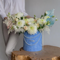 - Шляпная коробка бархатная (U), голубая (выс. 27 см, диам. 25 см) - 1 шт