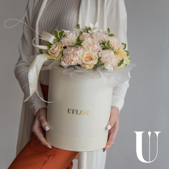 - Шляпная коробка маджестик (U), слоновая кость (выс. 25 см, диам. 20 см) - 1 шт
