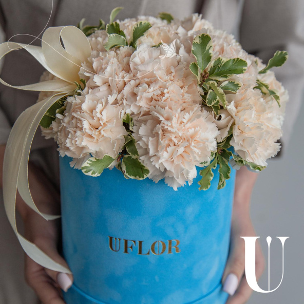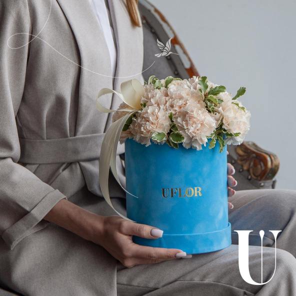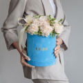 - Шляпная коробка бархатная (U), голубая (выс. 18 см, диам. 16 см) - 1 шт