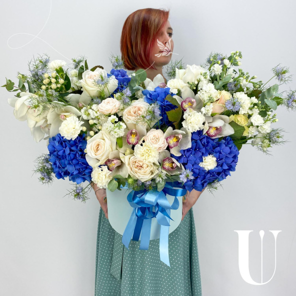 - Шляпная коробка маджестик (U), светло-голубая (выс. 25 см, диам. 20 см) - 1 шт