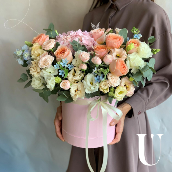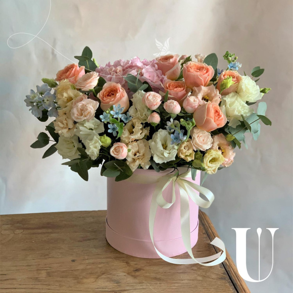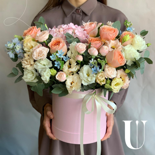 - Шляпная коробка нежно-розовая (выс. 25 см, диам. 20 см) - 1 шт