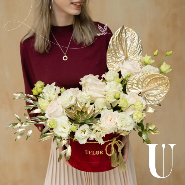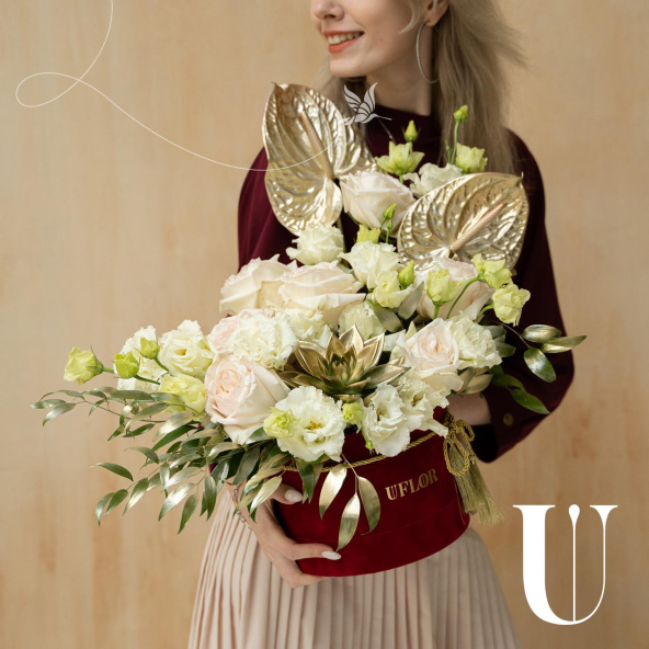 - Шляпная коробка бархатная, красная (выс. 15 см, диам. 30 см) - 1 шт