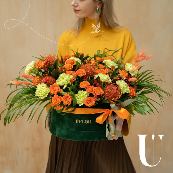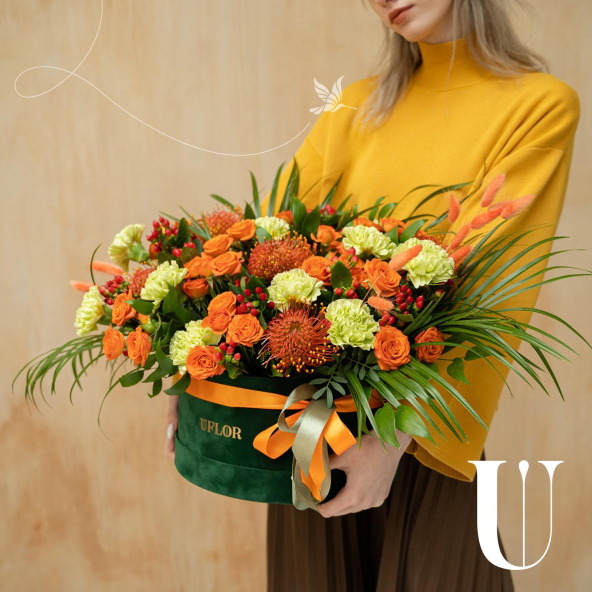 - Шляпная коробка бархатная (U), тёмно-зеленая (выс. 15 см, диам. 30 см) - 1 шт