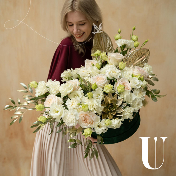 - Шляпная коробка бархатная (U), тёмно-зеленая (выс. 15 см, диам. 30 см) - 1 шт