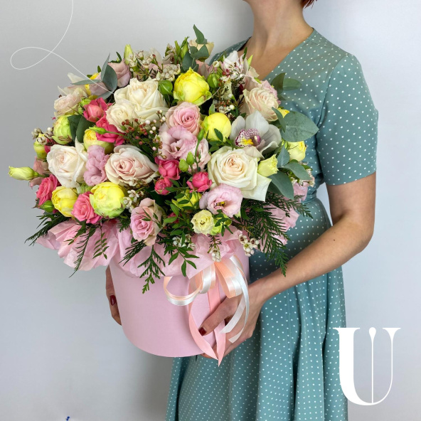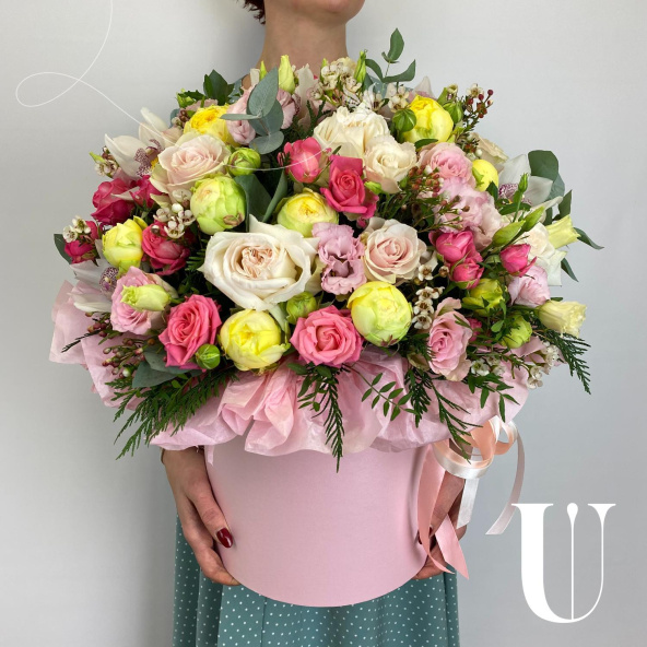 - Шляпная коробка маджестик (U), светло-розовая (выс. 27 см, диам. 25 см) - 1 шт